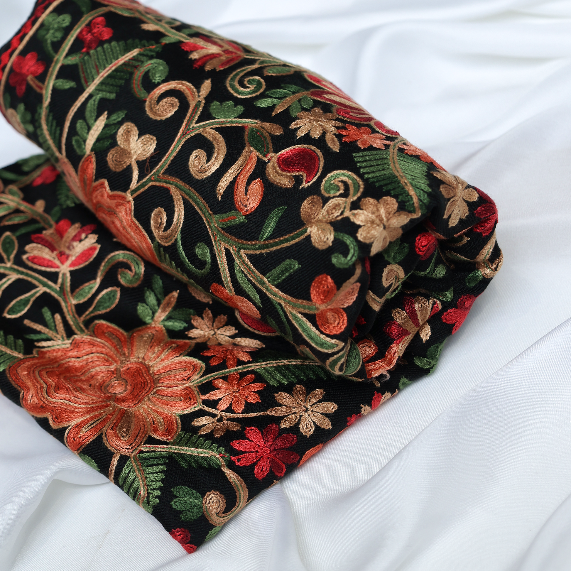 Amir Adnan Off White Machine-Embroidered Shawl. Luxurious, soft woolen fabric featuring authentic, vibrant Kashmiri Aari embroidery. This generous (90" x 54") shawl is the perfect blend of warmth, tradition, and style. A must-have accessory