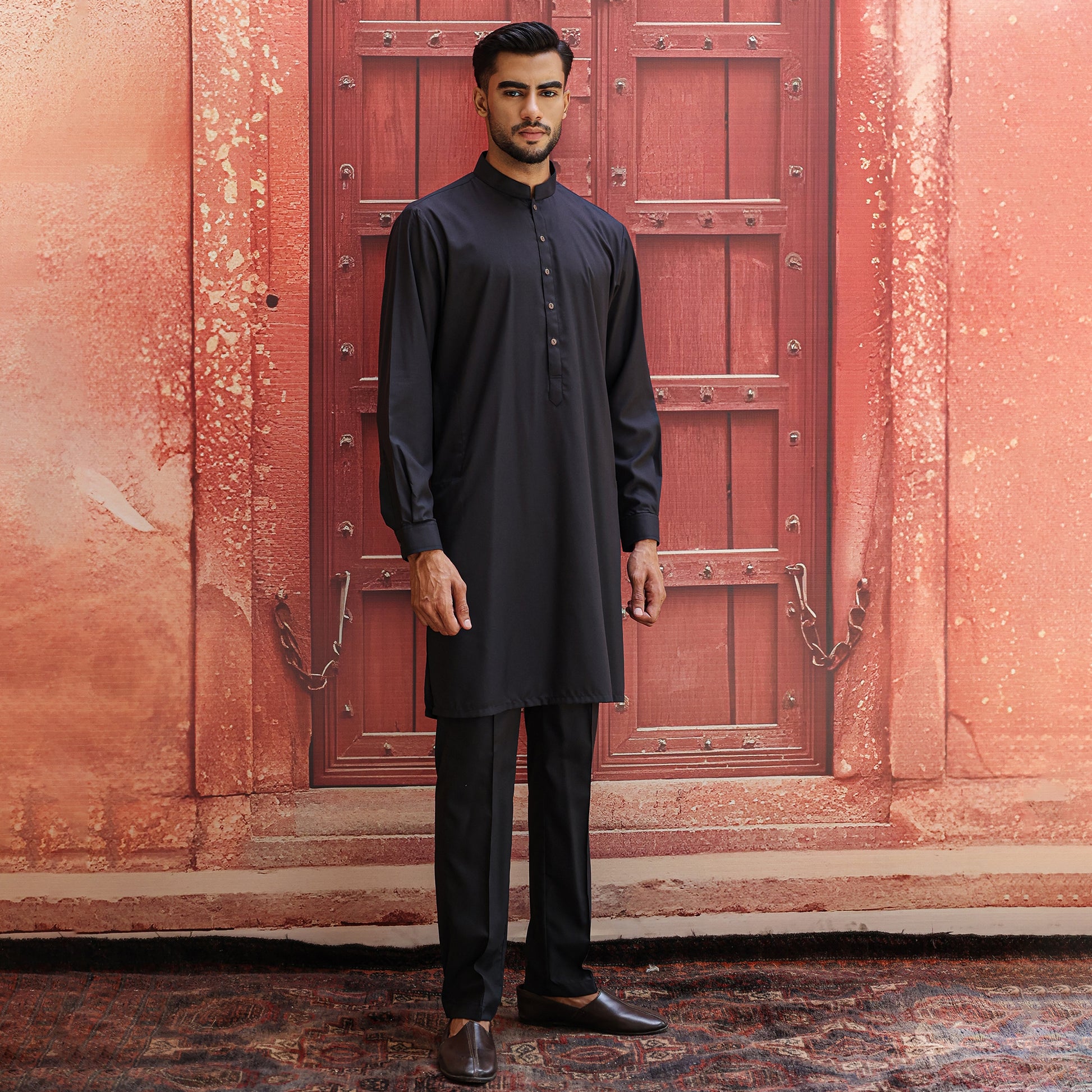 Expertly crafted in Pakistan for the Summer ’25 collection, this Tap Shoe poly viscose suit is crease resistant, easy to iron, and effortlessly elegant. Designed with a normal collar, normal placket, and clean plain finish, it’s ideal for evening wear and special occasions. Cut in a slim fit offering ease through the chest and sleeves with a tailored waist and hip this two-piece set includes a matching Tap Shoe slim-fit shalwar in the same premium fabric for a sharp, contemporary look.