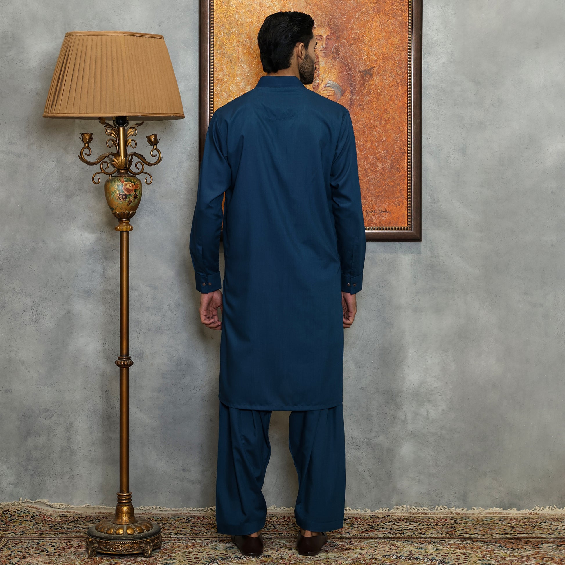 Reflecting Pond Poly Viscose Two-Piece Suit – Summer ’25 Collection Crafted in Pakistan for the Summer ’25 collection, this Reflecting Pond suit is made from a premium poly viscose blend that is crease resistant, easy to iron, and effortlessly elegant. Featuring a collar, normal placket, and clean plain finish, it is ideal for evening wear and special occasions. Cut in a classic fit, tapered through the chest, sleeves, waist, and hip, this two-piece set includes a matching Reflecting Pond shalwar in the same refined fabric for a polished, versatile look.